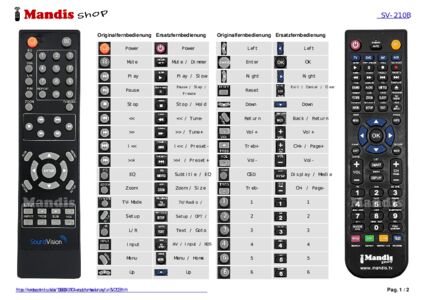 Diese Fernbedienung ersetzt Ihre SV-210B in vollem Umfang und bietet alle Funktionen des Originals.