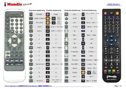 Ein Dokument ist enthalten, um die Verwendung der neuen Fernbedienung zu erleichtern, indem es die Tastenbelegung zeigt.