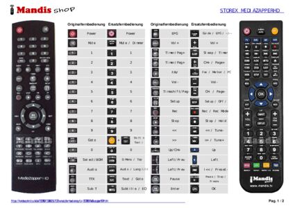 Ein Dokument ist enthalten, um die Verwendung der neuen Fernbedienung zu erleichtern, indem es die Tastenbelegung zeigt.