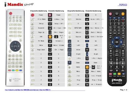 Ein Dokument ist enthalten, um die Verwendung der neuen Fernbedienung zu erleichtern, indem es die Tastenbelegung zeigt.