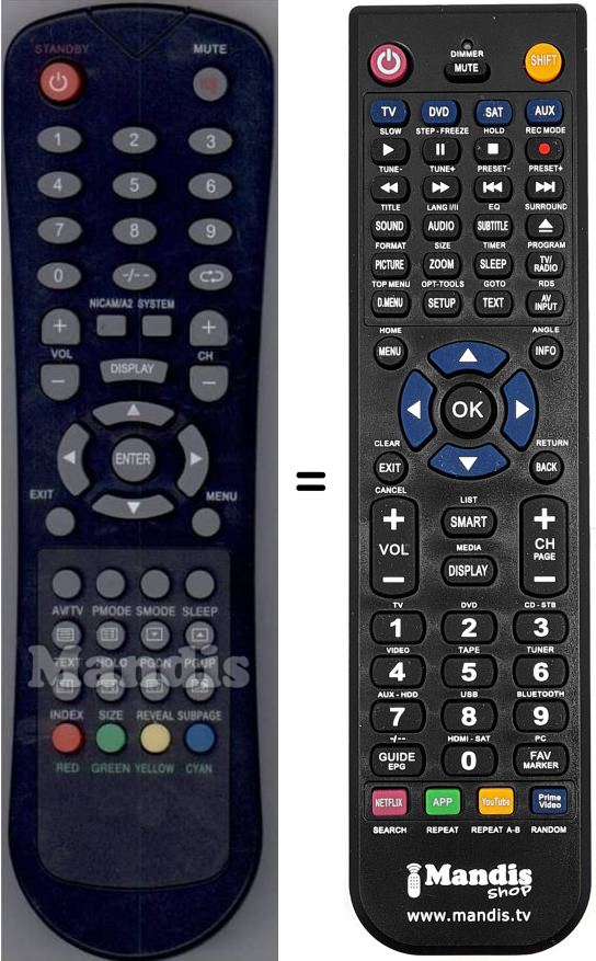 Es handelt sich jedoch nicht um eine Universalfernbedienung sondern um eine Fernbedienung die das Original ersetzt.