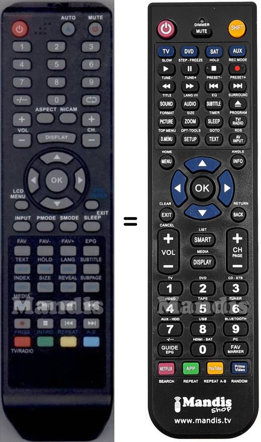 Diese Fernbedienung ersetzt Ihre RCTFK78 in vollem Umfang und bietet alle Funktionen des Originals.