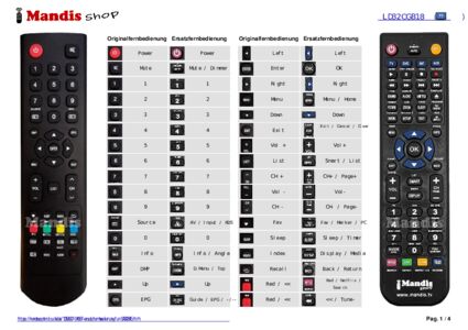 Im Folgenden zeigen wir Ihnen die Zuordnung jedes einzelnen Knopfes der Originalfernbedienung zu der Taste, die dieselbe Funktion auf der Ersatzfernbedienung ausführt. In einigen Fällen müssen Sie möglicherweise die UMSCHALT-Taste drücken, bevor Sie eine andere Taste drücken, um bestimmte Aktionen auszuführen. Diese zusätzlichen Funktionen werden oft wenig genutzt und dienen dazu, das Verständnis der Ersatzfernbedienung zu erleichtern oder weil die Originalfernbedienung mehr Tasten hat als das entsprechende Modell.