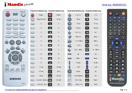 Ein Dokument ist enthalten, um die Verwendung der neuen Fernbedienung zu erleichtern, indem es die Tastenbelegung zeigt.