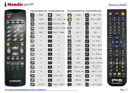 Ein Dokument ist enthalten, um die Verwendung der neuen Fernbedienung zu erleichtern, indem es die Tastenbelegung zeigt.