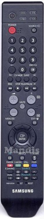 TV, Power, Source, 1, 2, 3, 4, 5, 6, 7, 8, 9, 0, -/--, PRE-CH, TV, CH MGR, Sleep, PC, <<, Stop, Play/Pause, >>, Vol+, Vol-, Mute, P+, P-, [≡i]/Menu, [≡x]/Exit, Up, Down, Left, Right, Enter, [≡+]/ PIP, [≡?]/Info, [≡]/TTX/MIX, Red/P.Mode, GReen/S.Mode, Yellow/Still, Blue/P.Size, E.Saving, [≡◊], Source, I-II Dual, (O)/SRS, [ □]/Position, P Up, P Down