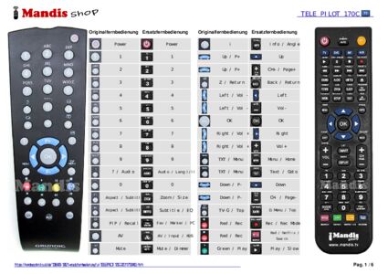 Diese Fernbedienung ersetzt Ihre TELE PILOT 170C (720117139100) in vollem Umfang und bietet alle Funktionen des Originals.