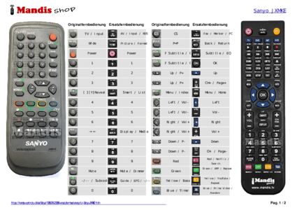Ein Dokument ist enthalten, um die Verwendung der neuen Fernbedienung zu erleichtern, indem es die Tastenbelegung zeigt.