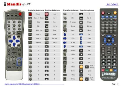 Ein Dokument ist enthalten, um die Verwendung der neuen Fernbedienung zu erleichtern, indem es die Tastenbelegung zeigt.