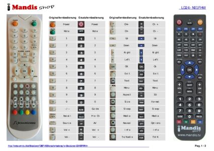 Ein Dokument ist enthalten, um die Verwendung der neuen Fernbedienung zu erleichtern, indem es die Tastenbelegung zeigt.