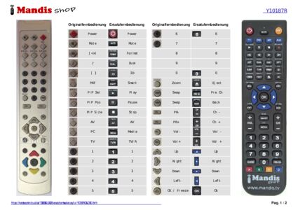 Ein Dokument ist enthalten, um die Verwendung der neuen Fernbedienung zu erleichtern, indem es die Tastenbelegung zeigt.
