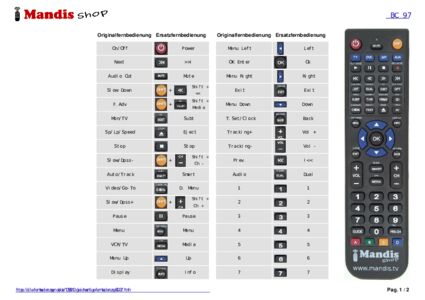 Ein Dokument ist enthalten, um die Verwendung der neuen Fernbedienung zu erleichtern, indem es die Tastenbelegung zeigt.