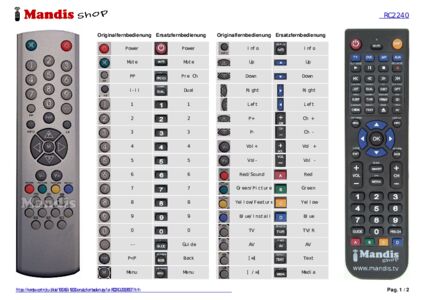 Diese Fernbedienung ersetzt Ihre RC 1240 (20087924) in vollem Umfang und bietet alle Funktionen des Originals.