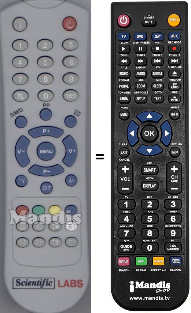 Die Fernbedienung ersetzt das Original Scientificlabs002 in der Gesamtheit seiner Funktionen.