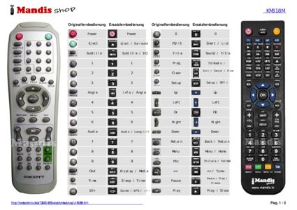 Ein Dokument ist enthalten, um die Verwendung der neuen Fernbedienung zu erleichtern, indem es die Tastenbelegung zeigt.