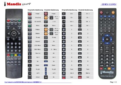 Ein Dokument ist enthalten, um die Verwendung der neuen Fernbedienung zu erleichtern, indem es die Tastenbelegung zeigt.