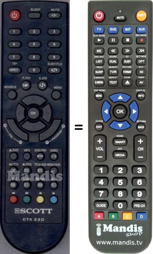 Home > Marken > Fernbedienungen Scott > Fernbedienung für SCOTT CTX220