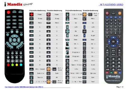 Ein Dokument ist enthalten, um die Verwendung der neuen Fernbedienung zu erleichtern, indem es die Tastenbelegung zeigt.