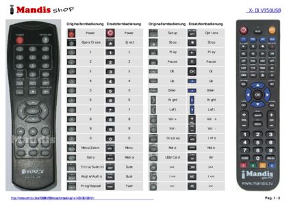 Diese Fernbedienung ersetzt Ihre X-DIV 350 USB in vollem Umfang und bietet alle Funktionen des Originals.