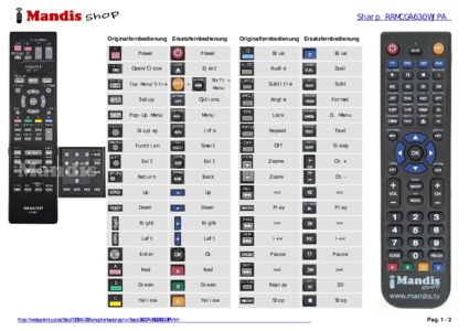 Diese Fernbedienung ersetzt Ihre GA630PA (RRMCGA630WJPA) in vollem Umfang und bietet alle Funktionen des Originals.