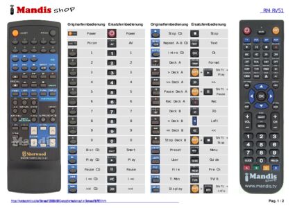 Diese Fernbedienung ersetzt Ihre RM-RV51 in vollem Umfang und bietet alle Funktionen des Originals.