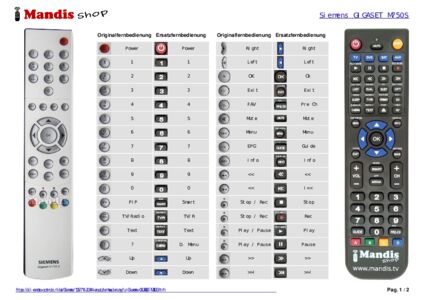 Ein Dokument ist enthalten, um die Verwendung der neuen Fernbedienung zu erleichtern, indem es die Tastenbelegung zeigt.