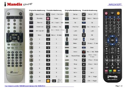 Ein Dokument ist enthalten, um die Verwendung der neuen Fernbedienung zu erleichtern, indem es die Tastenbelegung zeigt.