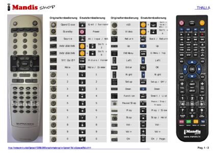 Ein Dokument ist enthalten, um die Verwendung der neuen Fernbedienung zu erleichtern, indem es die Tastenbelegung zeigt.