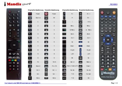 Ein Dokument ist enthalten, um die Verwendung der neuen Fernbedienung zu erleichtern, indem es die Tastenbelegung zeigt.