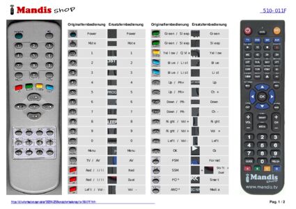 Diese Fernbedienung ersetzt Ihre 510-011F in vollem Umfang und bietet alle Funktionen des Originals.
