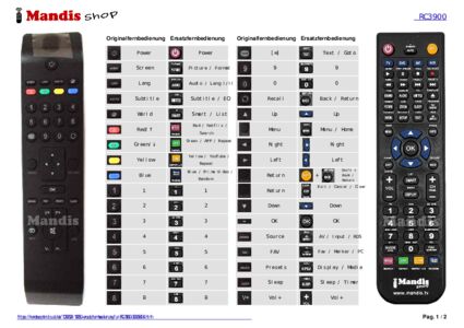 Diese Fernbedienung ersetzt Ihre RC 3900 (30070417) in vollem Umfang und bietet alle Funktionen des Originals.