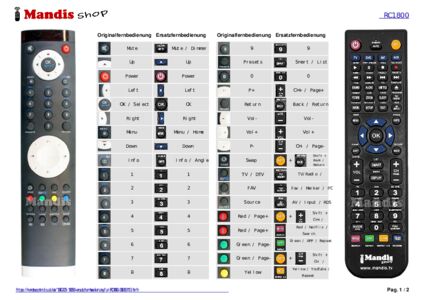 Diese Fernbedienung ersetzt Ihre RC1800 (30063113) in vollem Umfang und bietet alle Funktionen des Originals.