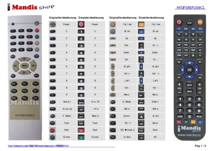 Ein Dokument ist enthalten, um die Verwendung der neuen Fernbedienung zu erleichtern, indem es die Tastenbelegung zeigt.