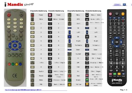Ein Dokument ist enthalten, um die Verwendung der neuen Fernbedienung zu erleichtern, indem es die Tastenbelegung zeigt.