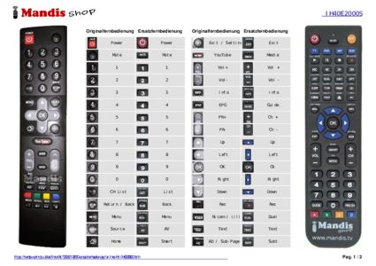 Ein Dokument ist enthalten, um die Verwendung der neuen Fernbedienung zu erleichtern, indem es die Tastenbelegung zeigt.