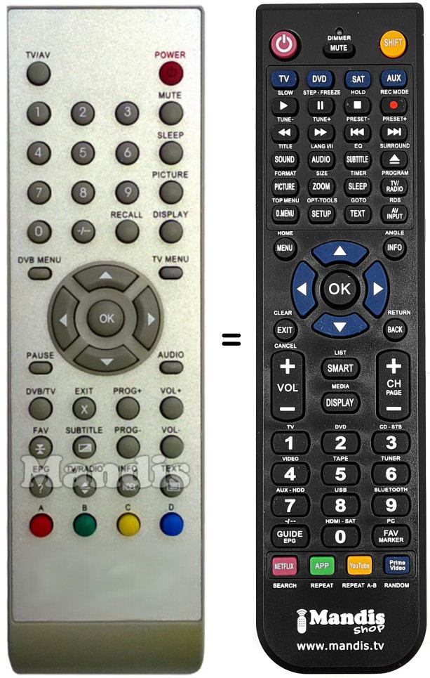 Es handelt sich jedoch nicht um eine Universalfernbedienung sondern um eine Fernbedienung die das Original ersetzt.