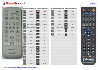Im Folgenden zeigen wir Ihnen die Zuordnung jedes einzelnen Knopfes der Originalfernbedienung zu der Taste, die dieselbe Funktion auf der Ersatzfernbedienung ausführt. In einigen Fällen müssen Sie möglicherweise die UMSCHALT-Taste drücken, bevor Sie eine andere Taste drücken, um bestimmte Aktionen auszuführen. Diese zusätzlichen Funktionen werden oft wenig genutzt und dienen dazu, das Verständnis der Ersatzfernbedienung zu erleichtern oder weil die Originalfernbedienung mehr Tasten hat als das entsprechende Modell.