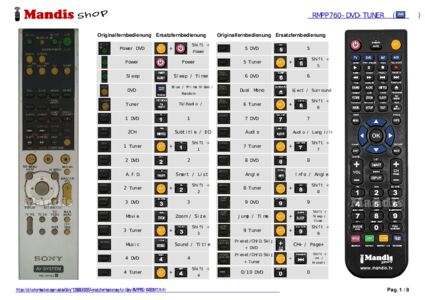 Ein Dokument ist enthalten, um die Verwendung der neuen Fernbedienung zu erleichtern, indem es die Tastenbelegung zeigt.