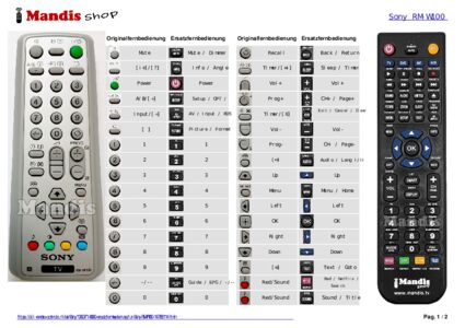 Diese Fernbedienung ersetzt Ihre RM-W100 (147800711) in vollem Umfang und bietet alle Funktionen des Originals.