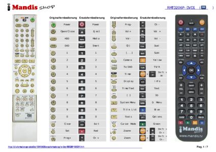 Ein Dokument ist enthalten, um die Verwendung der neuen Fernbedienung zu erleichtern, indem es die Tastenbelegung zeigt.