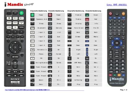 Diese Fernbedienung ersetzt Ihre RMT-AA400U (149336911) in vollem Umfang und bietet alle Funktionen des Originals.