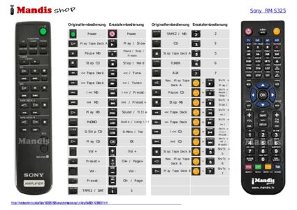 Diese Fernbedienung ersetzt Ihre RM-S325 (147365531) in vollem Umfang und bietet alle Funktionen des Originals.