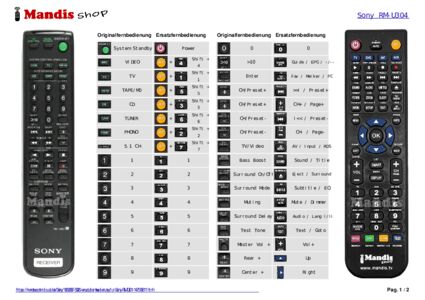Diese Fernbedienung ersetzt die meisten Funktionen Ihres RM-U301. Es ist keine Universalfernbedienung, sondern eine Kopie mit den meisten Tasten und Funktionen Ihres Originals.