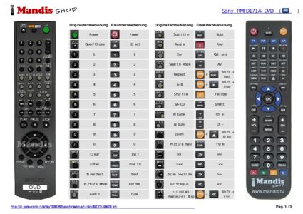 Diese Fernbedienung ersetzt Ihre RMT-D171A (147884311) in vollem Umfang und bietet alle Funktionen des Originals.