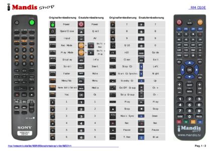 Ein Dokument ist enthalten, um die Verwendung der neuen Fernbedienung zu erleichtern, indem es die Tastenbelegung zeigt.