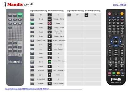 Ein Dokument ist enthalten, um die Verwendung der neuen Fernbedienung zu erleichtern, indem es die Tastenbelegung zeigt.