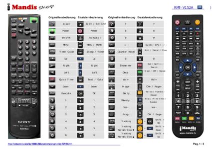 Diese Fernbedienung ersetzt Ihre RMT-V152A in vollem Umfang und bietet alle Funktionen des Originals.