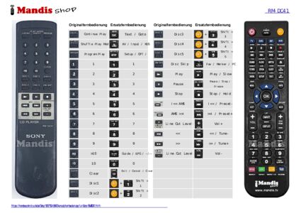Diese Fernbedienung ersetzt Ihre RM-DC41 in vollem Umfang und bietet alle Funktionen des Originals.