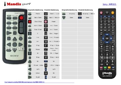 Diese Fernbedienung ersetzt Ihre RMT-835 (147927551) in vollem Umfang und bietet alle Funktionen des Originals.
