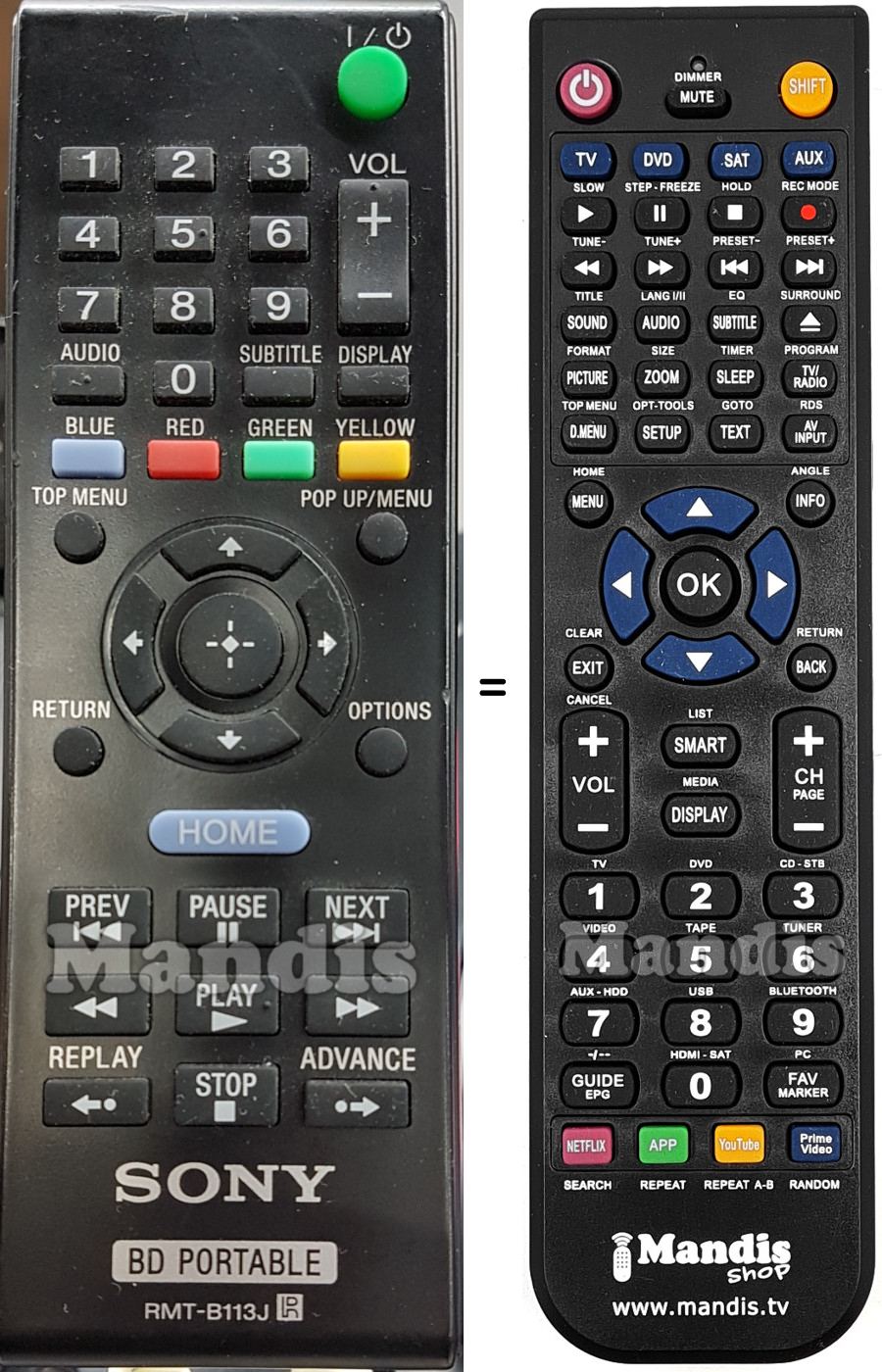 Diese Fernbedienung ersetzt Ihre RMT-B113J in vollem Umfang und bietet alle Funktionen des Originals.